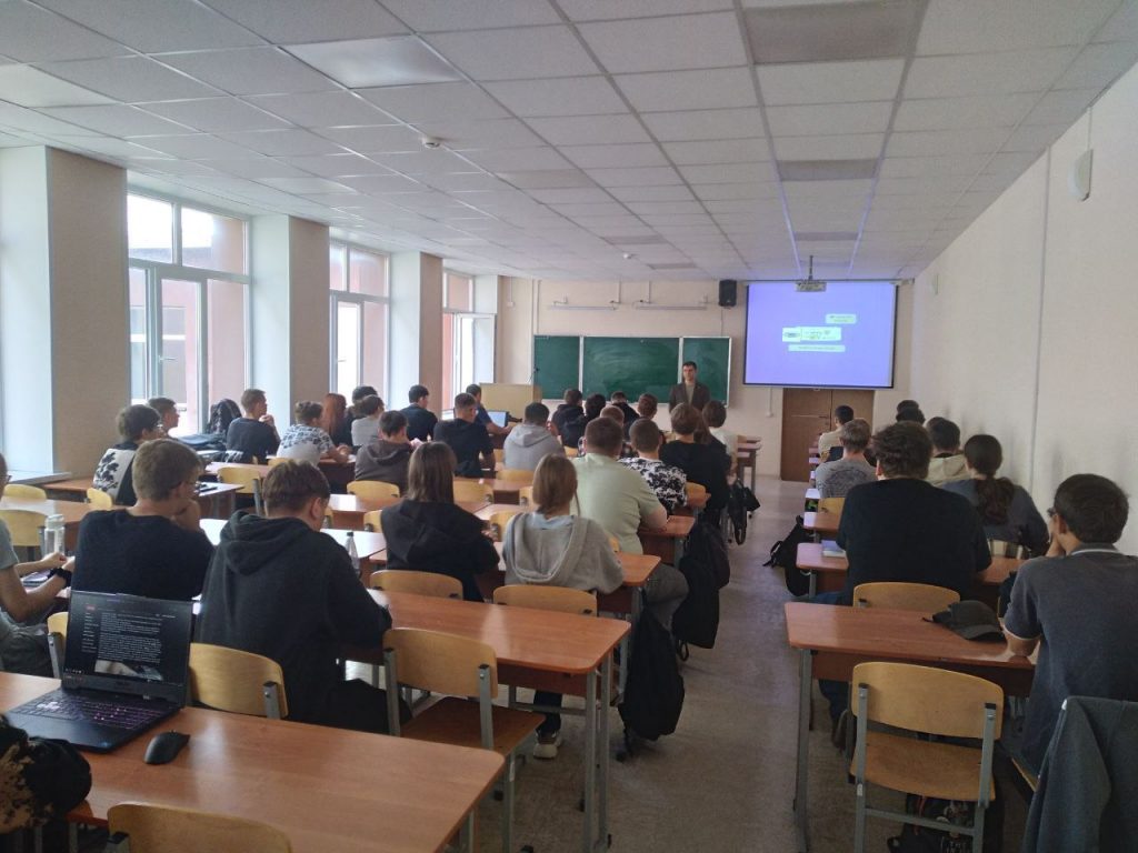 22 сентября студенты направления 09.03.01 Информатика и вычислительная техника встретились с главным специалистом отдела информационных технологий и информационной безопасности Министерства социального развития Оренбургской области, выпускником кафедры вычислительной техники и защиты информации, Донским И.И.. Свое выступление он начал с воспоминаний о своем обучении в ВУЗе на направлении подготовки 09.03.01 — Информатика и вычислительная техника. Затем рассказал о ключевых направлениях деятельности, достижениях и перспективах развития в ИТ-сфере. Студенты смогли погрузиться в реальные проблемы, связанные с информационными системами и сетями.